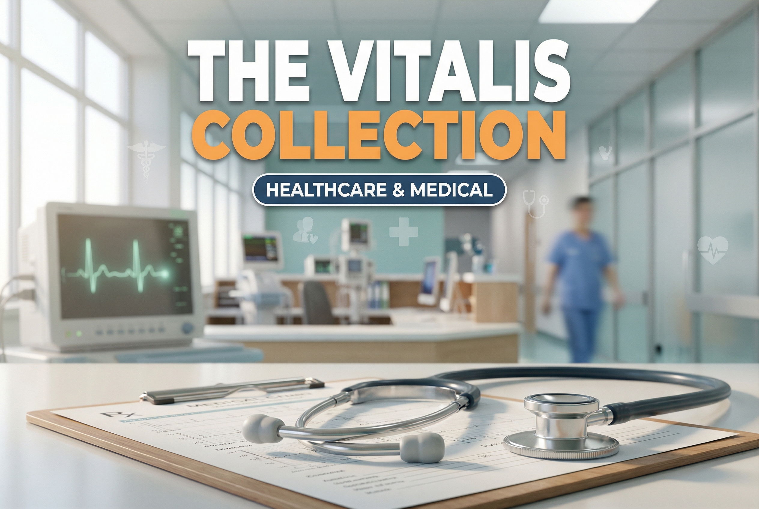 The Vitalis collection was designed for exactly this. Its palette of clinical white and calming teal, its discreet medical iconography, and its very airy grids inspire both seriousness and compassion. This is the collection to pick if you're applying to a university hospital, a private clinic, a long-term care facility, a private practice, or home care services — anywhere trust needs to take root at first glance.